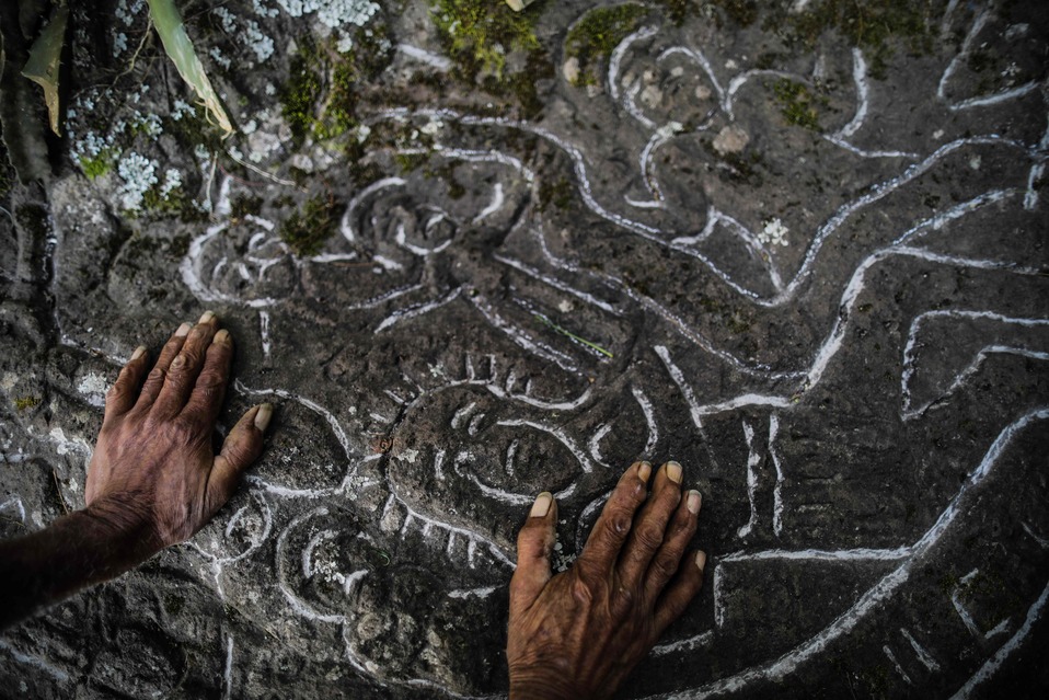 En una recóndita montaña de Nicaragua, Alberto Gutiérrez, un campesino de 78 años que vive solo, esculpe desde hace más de 40 años sobre las rocas figuras de indígenas, héroes, animales y símbolos religiosos usando un clavo como cincel y una piedra como martillo.