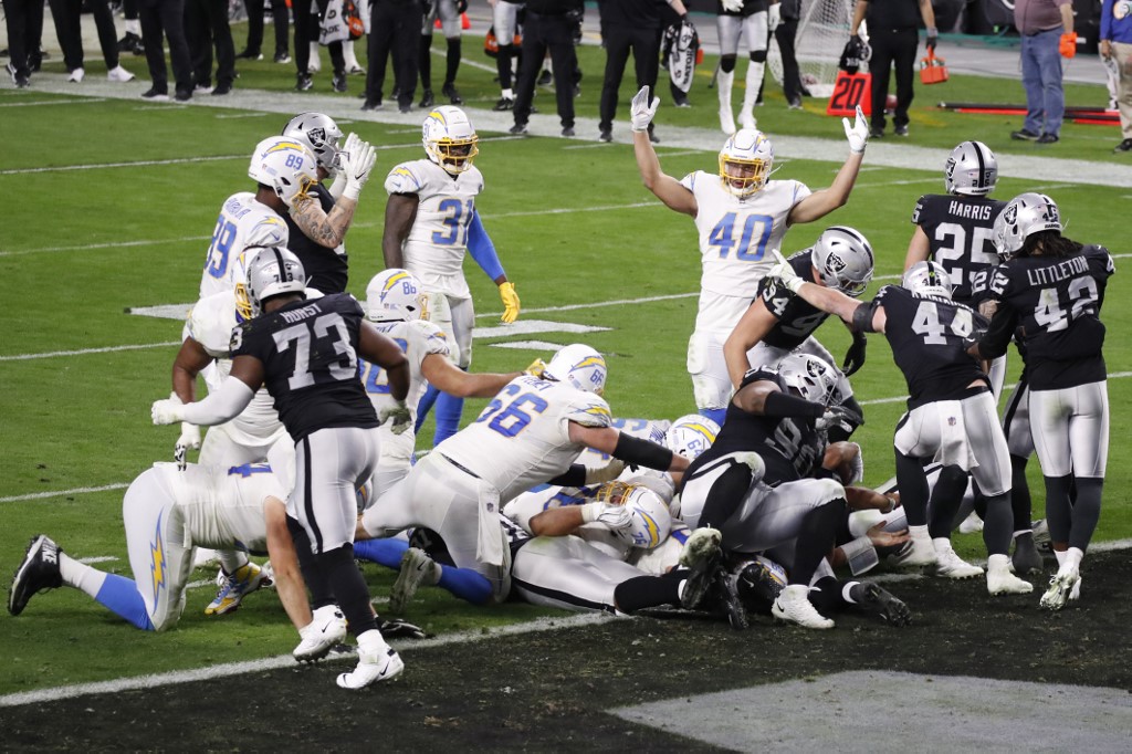 Los Chargers (5-9) rompieron una racha de nueve derrotas consecutivas contra sus contrapartes de la AFC Oeste y rompieron una racha de tres juegos contra los Raiders. Las Vegas (7-7) perdió al mariscal de campo Derek Carr por una lesión en la ingle izquierda en el primer cuarto. Ha perdido cuatro de cinco, casi acabando con sus oportunidades de playoffs.
