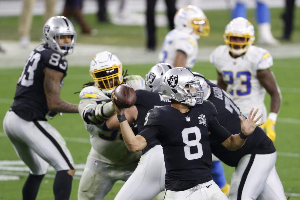 Para los Raiders, la historia cambió rápidamente de una victoria obligada para mantenerse con vida en la búsqueda de los playoffs, a cómo ganar con el respaldo Marcus Mariota viendo su primera acción como Raider, mientras preparaba un enfrentamiento de ex mariscales de campo de la Universidad de Oregon.