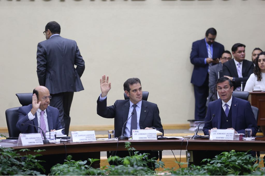 Miranda también aprovechó para presentar a los dos funcionarios cuyos nombres aparecen en las guías de envío de dichos sobres, quienes son los encargados de recibir diariamente la camioneta del servicio de mensajería que concentra todos los paquetes y traslada con resguardo militar los paquetes hasta la bodega del INE en Tláhuac.