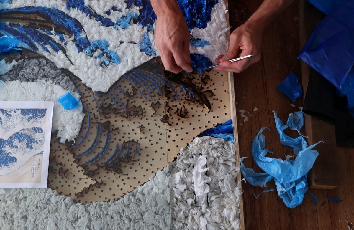 Para su última exposición, ha copiado a Picasso, Van Gogh, Monet y Warhol para llamar la atención sobre la contaminación provocada por la acumulación de residuos plásticos.