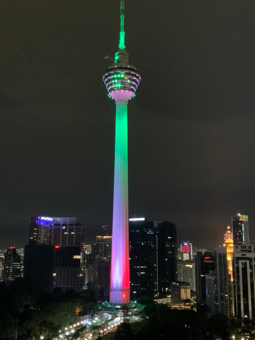 Hay otra alta infraestructura que está iluminada con los colores patrios de México, se trata de la Torre de Telecomunicaciones de Kuala Lumpur, también conocida como Torre KL (o KL Tower), en Malasia, con un homenaje que duró alrededor de una hora.