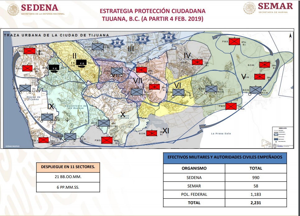 Comentó que se establecieron 21 bases de operaciones mixtas, conformadas por fuerzas armadas y policías federales, así como seis puntos militares de seguridad en donde se hace revisión de vehículos.