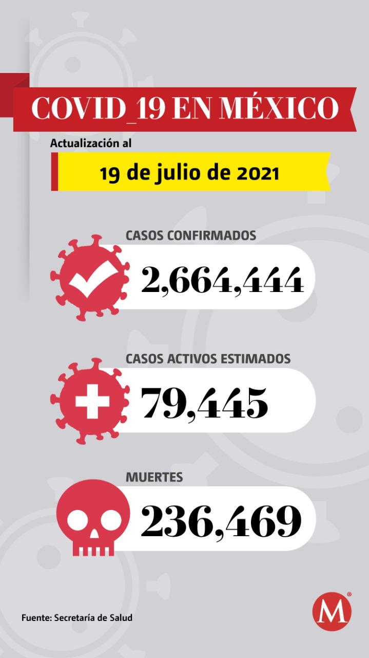 México suma 236 mil 469 muertes por coronavirus SARS-CoV-2, 138 más que ayer, y acumula 2 millones 644 mil 444 casos, de acuerdo al informe dado a conocer esta tarde por la Secretaría de Salud.